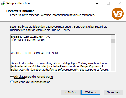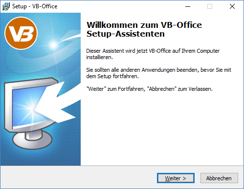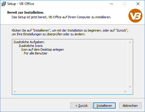 Diese Seite wird ggf. nicht angezeigt, wenn VB-Office bereits installiert ist und eine Aktualisierung installiert wird.